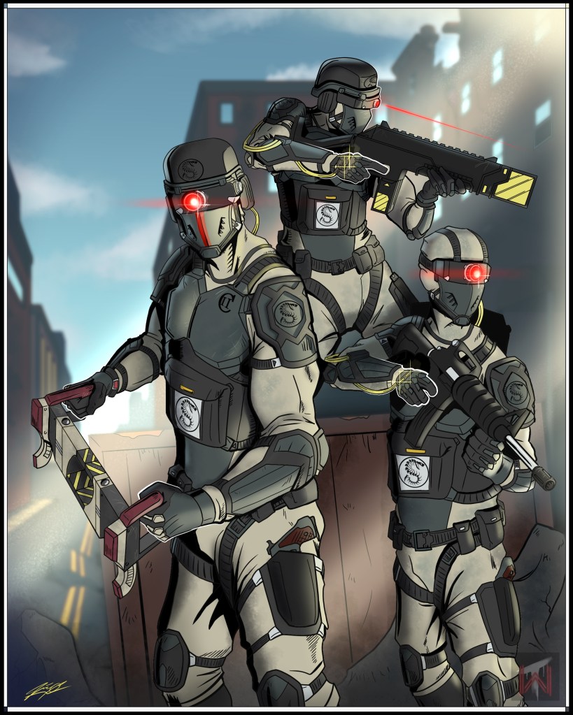 The Serpentine is a governmental subgroup of non-jurisdictional wardens authorized with detaining specified high-threat personnel deemed unfit for standard high-security prison. Housed instead within the Serpent Holding Facility, high-threat personnel are monitored and attended to by in-house operators. Field agents utilize a variety of non-lethal and lethal weaponry for detainment and de-escalatory purposes, and often backup other affiliations such as A.R.C.H.E.R.S. and T.A.R.R.G.E.T.T. when engaging nonstandard threats. Their title, the Serpent, is derived from the Latin word ceperunt, meaning “to capture.”